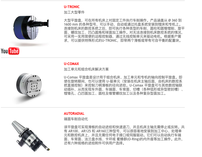 丹得瑞公司的所有產品均在位于米蘭附近的 Lainate 總部生產, 包括: TA-CENTER、 TA-TRONIC、 U-TRONIC、 U-COMAX 及 AUTORADIAL 數控鏜孔和斷面車削平旋盤,以及高精度模塊化刀具系統MODULHARD’ANDREA和用于高速加工的可調動平衡刀柄 TOPRUN、 整體式刀柄 MONOd'、 強力夾緊刀柄 MONOforce、 模塊化銑刀 和 模塊化車削刀具 MCD'。