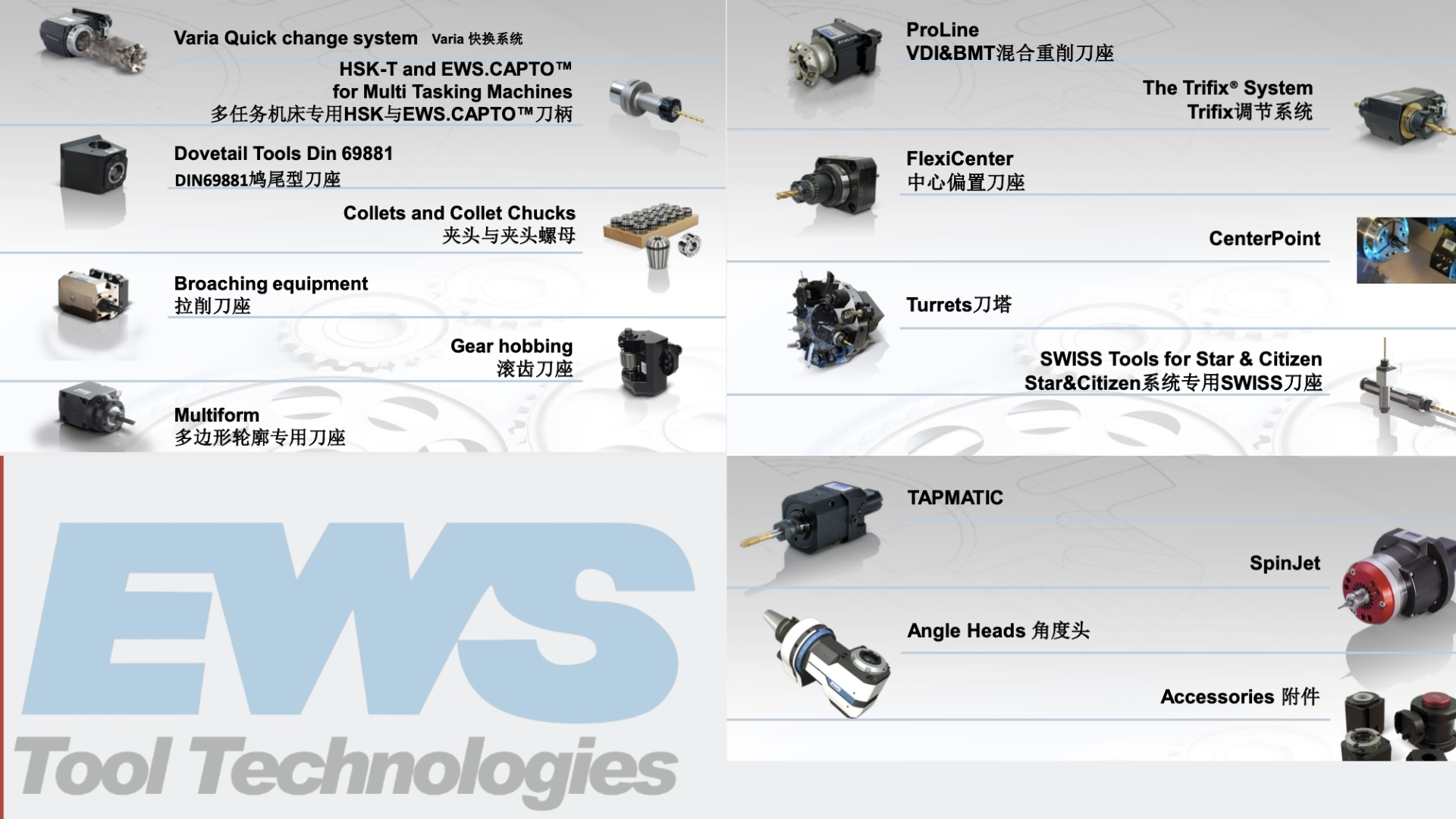 EWS公司介紹:EWS Weigele GmbH & Co. KG是固定和動力刀座的生產商,公司位于德國Uhingen.在韓國(EWS Korea)、法國、美國(Command Tooling)、中國都有分支機構和代理商。